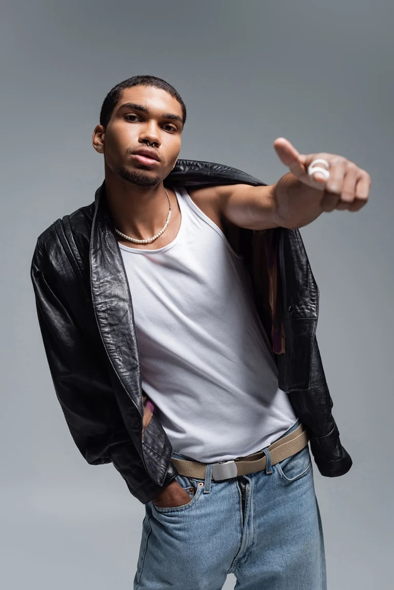 The Vintage Shadow leather jacket offers a relaxed, oversized fit with a retro-inspired design, perfect for adding timeless style to any outfit.